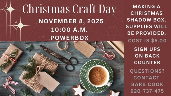 Making a Christmas shadowbox, example on the back counter. Supplies will be provided from Dollar Tree and old Christmas cards. Feel free to bring your own materials.