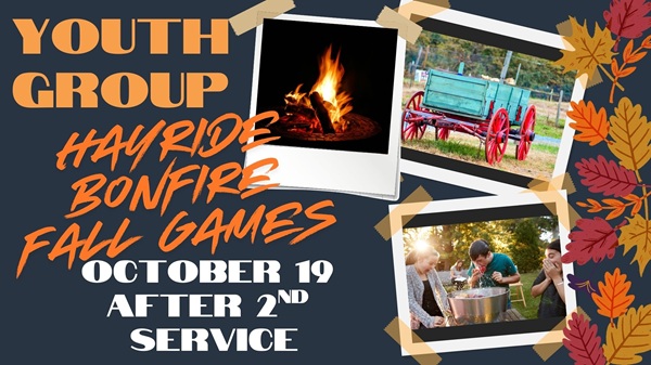 Who’s excited for the fall weather and fall activities? The Youth Group will be gathering for a hayride, bonfire, and fall activities at Grace and Jason Cox’s Farm on October 19 after 2nd service. The church van will provide a ride to the farm and will arrive back at the church at 4:30. Lunch will also be provided. Please sign up at the back counter. Questions, please reach out to Layne Kuhn.